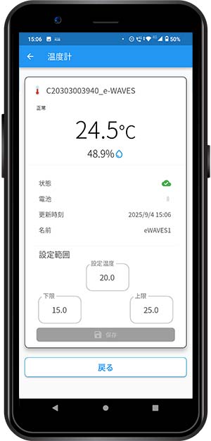 T&D社のTR41A(おんどとりJr)や太平洋工業社のe-WAVES BLEタイプ温度計と連携して温度管理もリアルタイムで監視・記録・保存が可能でDoCoMAP地図上でも温度状況の確認が可能です。さらに温度が設定値を超えた場合には通知され、記録結果は日報に反映されます。