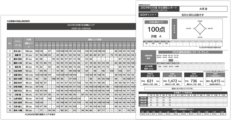 Analyzes and reports driver's safe and eco-friendly driving. It can also be used as a communication tool with drivers, as it shows their current driving level and driving improvement status at a glance.