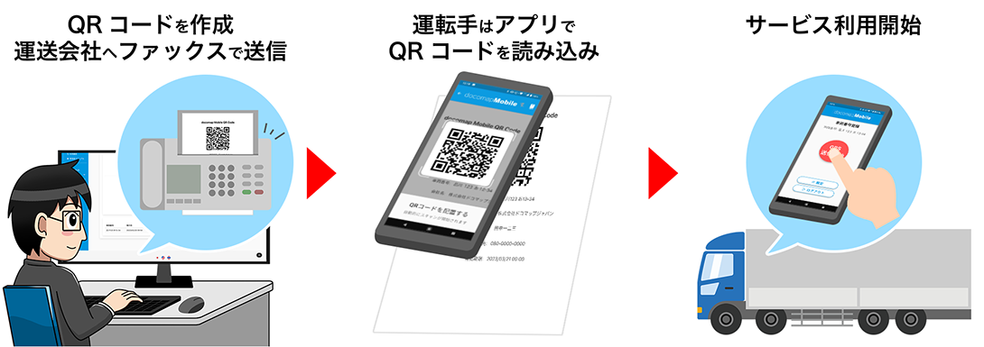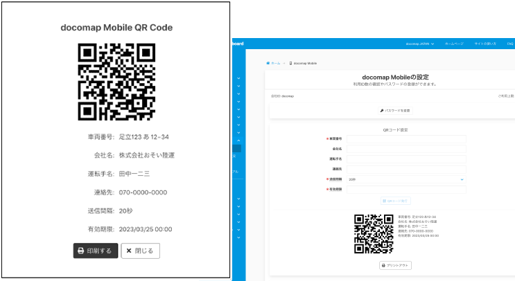 利用者は手持ちのスマートフォンにdocomap Mobileアプリケーションをインストールし、発行されたQRコードを読込むだけで簡単に位置情報を管理者に送信できます。さらに、QRコードには有効期限を設けることが可能なため、不用に利用されることを防ぐ機能もございます。