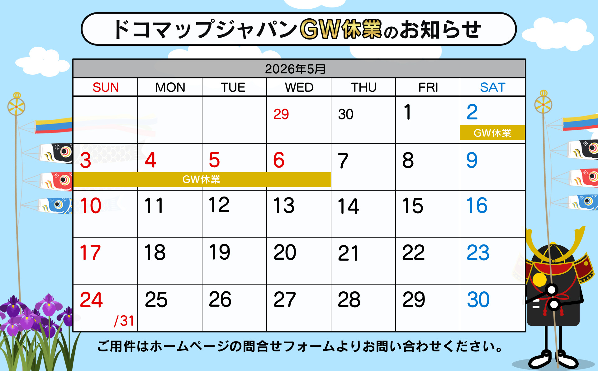 ゴールデンウィーク休業期間のお知らせ