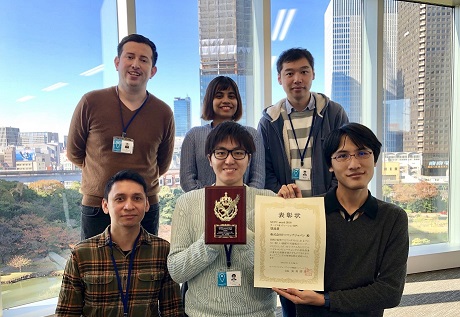 docomap JAPAN 開発チーム(11月に移転した新しいオフィスから望む旧芝離宮恩賜庭園をバックに撮影)