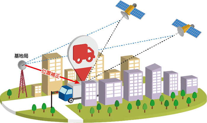 GNSS(GPS/みちびきQZSS/BDS/GLONASS)の他、WiFiや通信基地局情報から測位もするため、市街地や地下などの衛星受信ができない場所でもご利用いただけます。